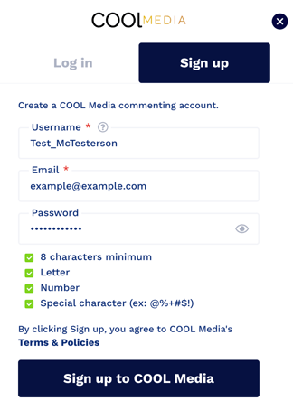 Once you're set, click on "Sign up to COOL Media" to complete the process and dive into the conversation.